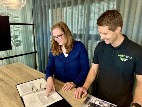 Als de uitvoeringstekening en bijbehorende stukken gemaakt zijn, door ons of door uzelf, kunnen we starten. We starten met het ontwerp dat er al ligt en ontwikkelen dat gedurende de bouw door. Alle tekeningen die door onderaannemers gemaakt worden, zoals de fundering, staalconstructies en gevelbekleding, moeten stuk voor stuk nog ter goedkeuring langs bij de ‘prüfer’ van de gemeente: de inspecteur. Vaak beginnen wij dus al voordat de tekening definitief is. We starten zo snel mogelijk met de voorbereidende werkzaamheden, zoals het grondwerk. Mocht de prüfer nog zaken wijzigen, dan schakelen we snel. Flexibiliteit is echt onmisbaar bij bouwprojecten in Duitsland.